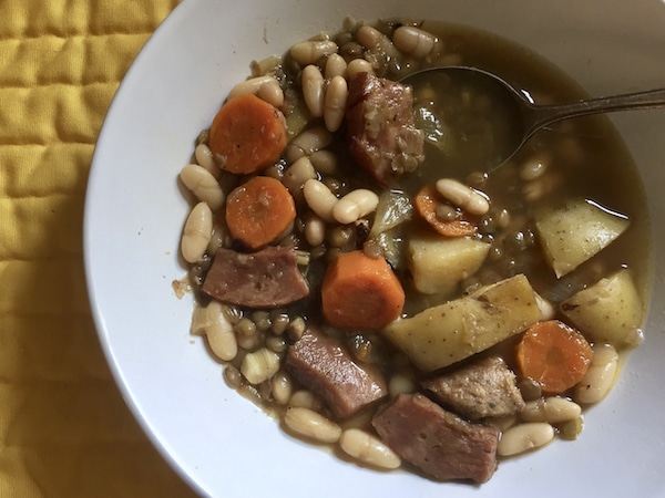 A chunky, hearty soup that’s great for colder weather. It’s packed with flavor from ham, sausage, beans, and lentils. Plus a secret ingredient borrowed from Italian grandmas. Simmered slowly to bring out the flavors.