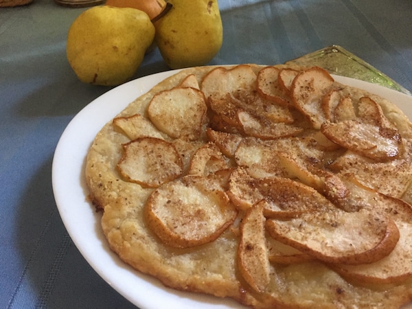 Take advantage of seasonal fresh pears with this simple tart. No pre-baking required. Make the dough, cut the fruit, let it rest, and bake.